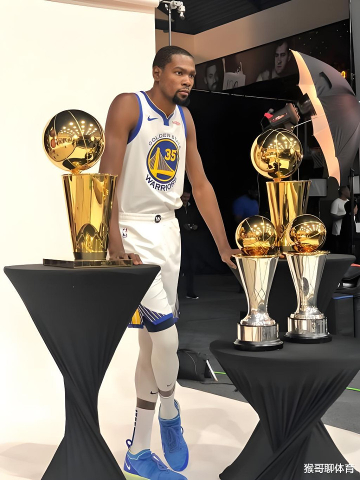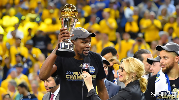 但问题也出在这。杜兰特的两个冠军,是在勇士拿的。说得直白点,是在库里的地盘上拿的。虽然那两个总决赛MVP实至名归,但外人总会嘀咕:你是站在巨人的肩膀上。