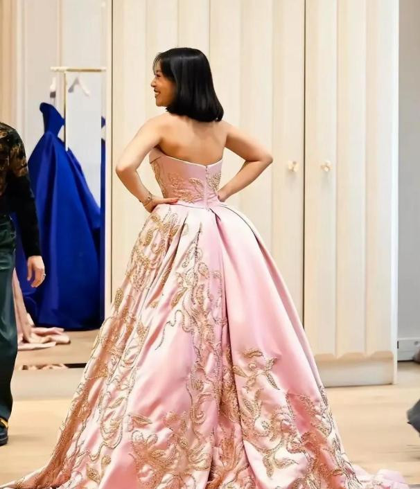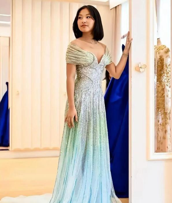 看来吴君如女儿真的用心了,她在巴黎名媛舞会上的压轴造型选择宝石蓝,估计也是想和真正的王室公主一样高贵,还充满着冷静和智慧。