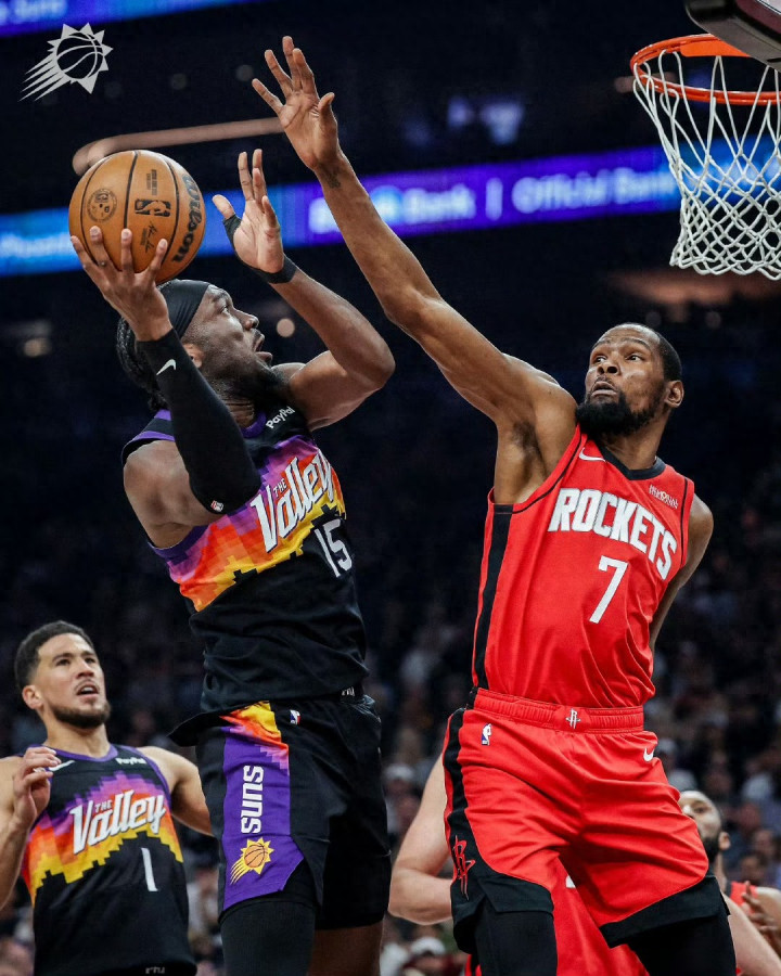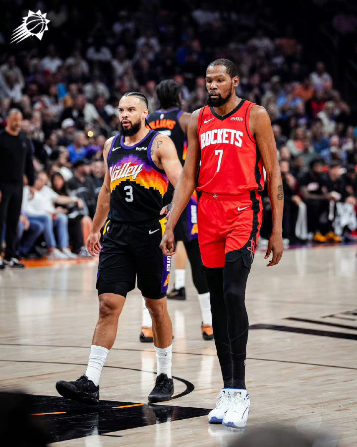比赛变幻莫测,火箭逐渐找回状态,外线手感反弹,防守端也做得更好,杜兰特带队是吹起反攻号角,一点点缩小差距,让悬念陡增,这段时间才打出应有的水准。太阳投篮命中率骤降,尤其三分更是疯狂打铁,他们仅靠着造杀伤罚球勉强守住优势,上半场57-54只差三分,几乎处于相同起跑线。