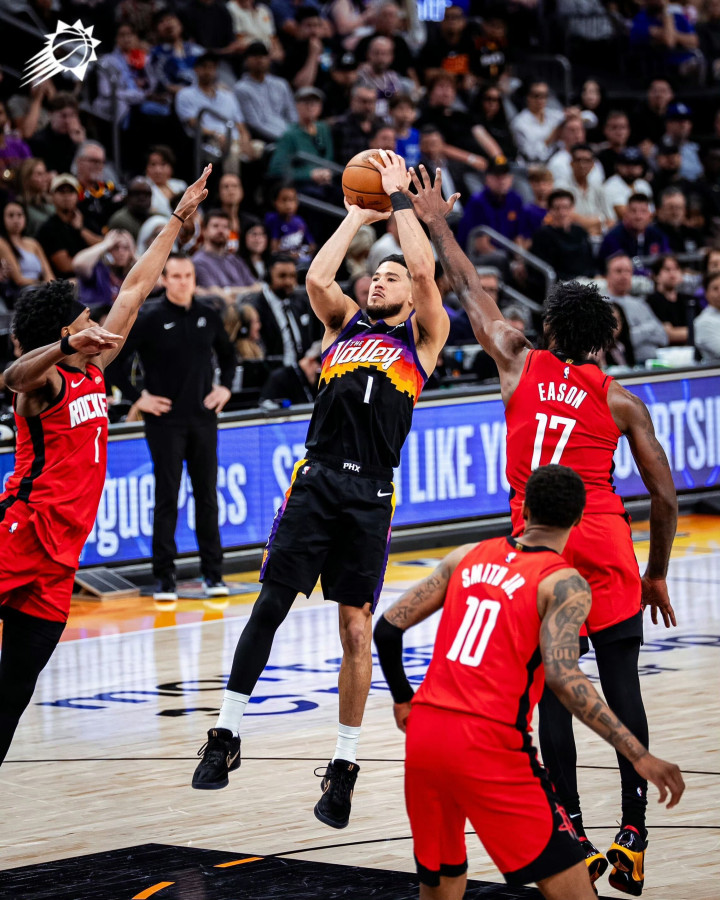太阳开局状态极佳,布克和古德温下起三分雨,马克·威廉姆斯则在内线如同探囊取物,犀利进攻轰出一波24-0的高潮,如此走势着实出乎意料,随着衔接阵容上来,强度有所降低,这给到对面喘息的机会。火箭发挥太抽象,攻防两端都毫无节奏,经过一段时间的调动勉强稳住,首节21-37暂时落后十六分。