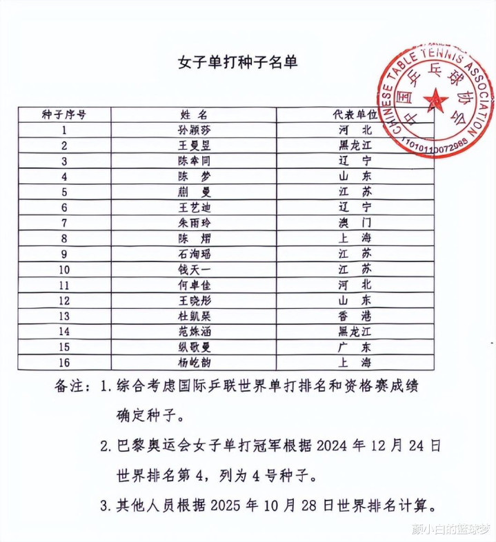 实际上樊振东也说了全运会实在是太难打了,看吧邓亚萍、小胖都说全运会难打,这些种子选手首轮游似乎也正常。