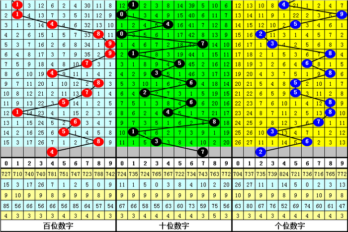 1.百位:最近9次大小总比例是5:4,奇偶总比例是4:5,012路总比例是4:2:3,本期预计百位开出号码4789,金胆看好为1路号4。