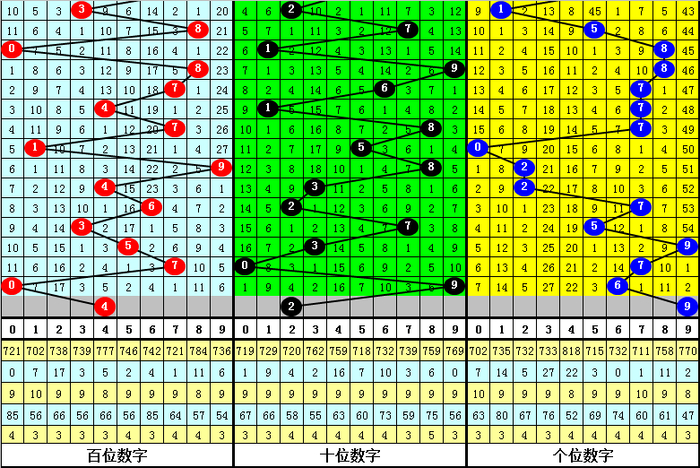 在连续10期开奖中,和值振幅分别为:8-10-16-13-10-6-0-2-3-1,逐渐下降,和值比较分散,本期预计和值小幅调整,出现在中部区域。