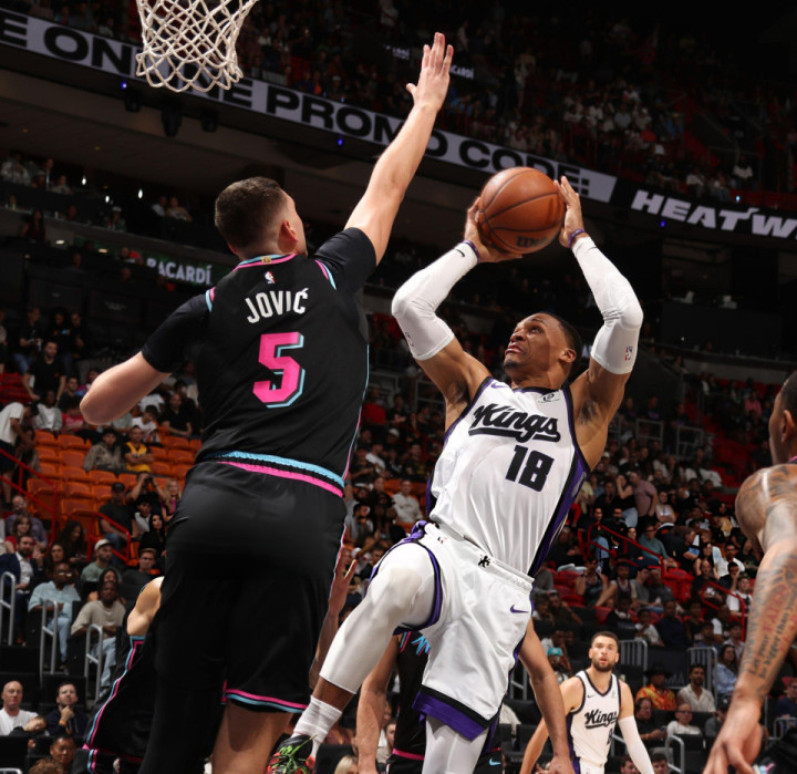 虽然国王队吃到败仗,但是威斯布鲁克的发挥十分出色。全场比赛,威少一共首发出场40分钟,16投10中,其中三分球3中2,罚球4中2,合计得到24分13篮板14助攻3抢断1封盖,可惜的是未能帮助球队取胜。